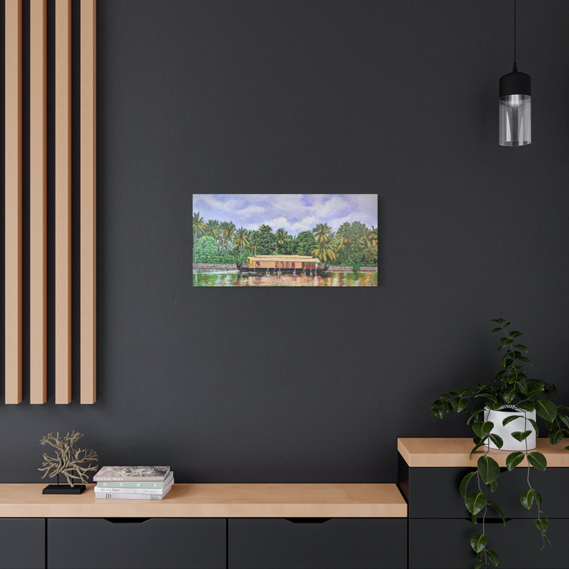 Kerala houseboat with detailed tropical background - Matte Canvas, Stretched - 2 size options